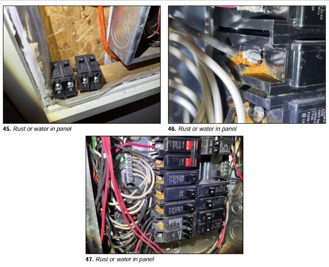During home inspection, inside the electrical panel, rust was observed on some connections. We need a licensed electrician to inspect, perform corrective actions and ensure it is in safe working condition.