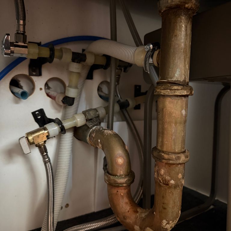 Replace corroded kitchen sink P-trap with dishwasher outlet. Located in Toronto condo.