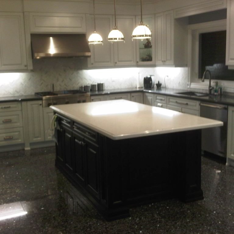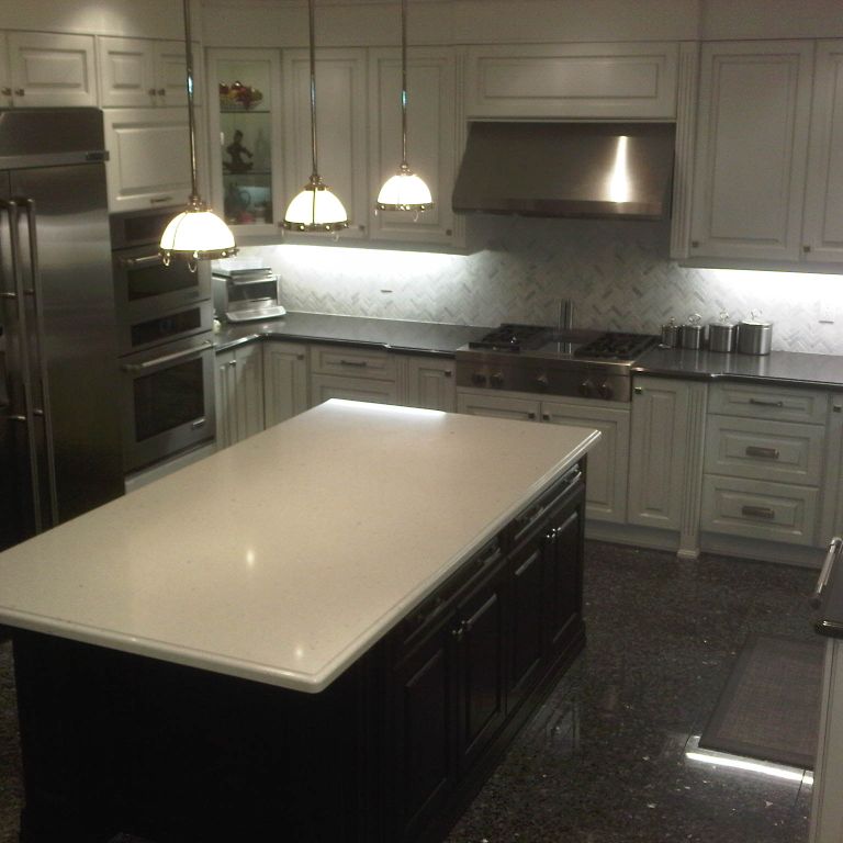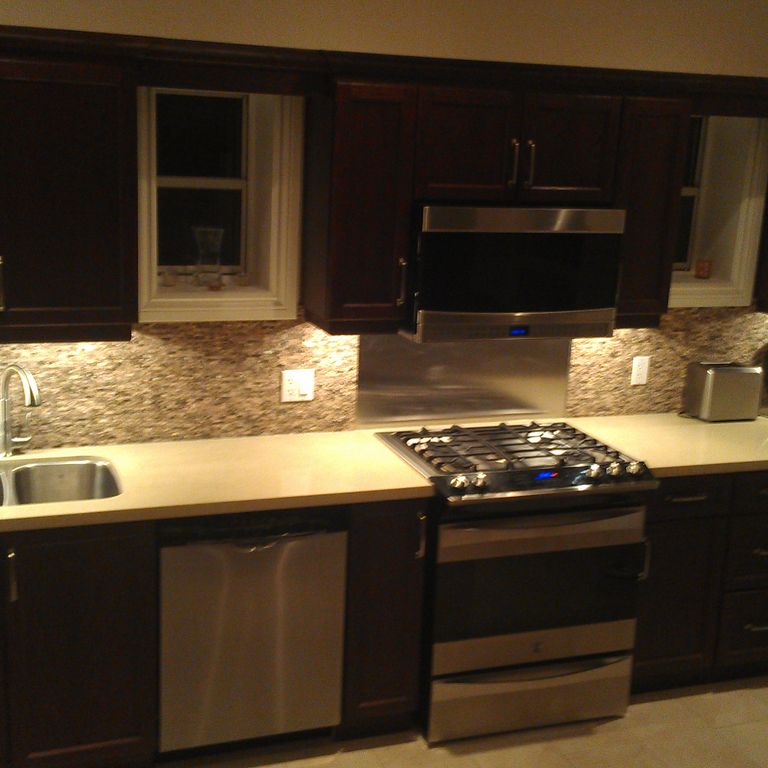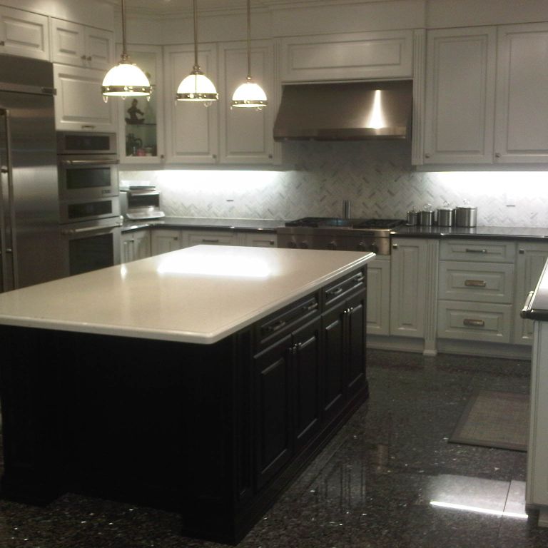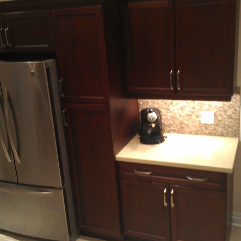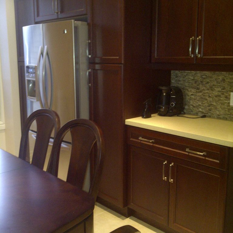 Sukh and Sonika from Sky Kitchen Cabinets have always been so warm and friendly, they indeed make you feel like a very welcomed guest when you are in their showroom/office. Sukh designed our kitchen and his team brought it to life. Roger was one of the installers, really nice guy, everything went smoothly, and any corrections were made, always with a smile. This is not a kitchen builder that you would regret doing your kitchen with! Also the value was phenomenol - you can get your dream kitchen with all the extra accessories at such a reasonable price. We got push out spice drawers, mantle-style hood fan, glass doors, tilt out drawer for dish sponges, vertical dray dividers for cupboards, a bank of 9 pot drawers, 6 additional drawers by the stove, angled corner cupboards made to size to fit our fridge like a built-in, beautiful mesh panelling above the mantle just to give that extra character, and 4 cutlery/kitchen tool wooden dividers for 4 of the drawers by the stove. Even after all was done and paid for, we called Sukh a couple months later about something noone had noticed before (one of the drawer doors to the left of the stove was a bit bigger than the one on the right side of the stove) and his after-sales customer service cannot be beat - he replaced ALL 6 of the drawer doors and they all match, and noone could tell the difference. From my, and friends/family experiences with home renovating, many other contractors might not have even returned your voicemail at that point. But Sukh took my call, looked at the drawing on the kitchen design, and ordered all 6 doors within a couple minutes right during that same phone call! That's unbeatable customer service. Then Roger came and installed the 6 doors, and he did a great job as usual. Another thing I can't believe I almost forgot to mention was the granite counters that we got through Sky Kitchen as well. First of all, it is the nicest granite I have ever seen, but more importantly was Sukh's customer service. He is a very classy guy! I don't believe that anyone else in the industry would have handled this the way he did. We weren't happy with the granite counters as soon as they were installed (the joint didn't look right with the intricate pattern and details of our counter - you have to see the pictures to understand). So ON THE SAME DAY THE COUNTERS WERE INSTALLED, Sukh ordered them to be removed, and they were removed right away! To make the situation even more tricky was the fact that the granite was no longer in stock, so Sukh REPLACED THE ENTIRE GRANITE COUNTERS - THAT'S 2 SLABS OF GRANITE - at absolutely no cost to us, and he did it with such grace too. There was no haggling involved. Whenever renovating, it is normal to expect some glitches along the way, but having the right guy (Sukh at Sky Kitchen) made the experience so much smoother and stress-free because he was designing and building our kitchen like it was his own! We will definitely use Sky Kitchen again for our future renos we have planned (master bath and family room built-in wall unit) and we would highly recommend you speak to Sukh at Sky Kitchen. We didn't get the chance to know many other employees there, but judging from Sonika (secretary), I can only imagine that a guy as classy as Sukh would likely only hire others with the same, hard-to-find qualities in other employees, so you are likely in good hands no matter who you talk to at Sky Kitchen. Hope you enjoy the pics of our beautiful kitchen!