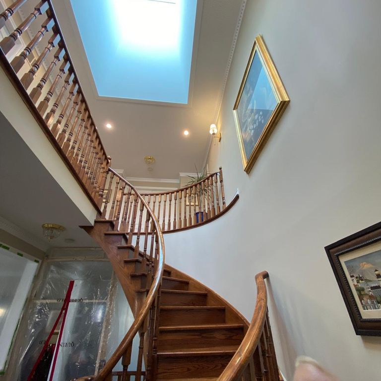 Based on our previous bad experience with skylights, we made the mistake of not including a skylight in our new home from the builder 24 years ago. Due to the windows orientation, our staircase and hallways were always dark. We tried to brighten the area with decoration, paint and lighting but never achieved what we wanted. Several times we had considered selling our house but we really like the many other features of our house. We really needed a new skylight but my wife was concerned with the potential mess and disruption with a big retrofit. After considering for past 15 years, we finally engaged with several contractors. We wanted a large skylight over the staircase opening. Most of the contractors who we talked to did not gave us the confidence that they can handle the project to our satisfaction. Many of them advertised that they can build skylights but in reality it was not their expertise and only as their side job combined with their roofing business. Some tried to convince us to go with a smaller skylight to avoid modifying the roof trusses. Fortunately we connected with Skylights Unlimited. Denis was very responsive and sent his expert installer Ed, to scope out the work. Ed spent extensive time inside our attic just to figure out what is possible based on our roof structure and trusses. He outlined the various options but recommended a size of 7 ft. x 8 ft. and a configuration that best suited our house. He also described how he would construct the scaffolding to do the work and how to minimize the disruption and dusts. We felt assured of his extensive skylight installation expertise. The work involved were extensive. We were happy that Skylight Unlimited provided a fair price and timeline for the project. The work was completed beyond our expectations. The dusts were minimal during the construction. It is now over a month since our skylight was installed. We could not be happier. The design of the skylight looks like a masterpiece integrated perfectly with the architectural features of our staircase and 2nd floor hallway. The interior finish inside the skylight tunnel is flawless under the bright natural light. The angle of the skylight allows the maximum amount of light into the house and allows us to easily see the sky and clouds. Every morning when entering the staircase, we are greeted with this flood of natural light, just brightens the start to our day. Every time when we look out at the skylight we feel blessed to have such a skylight and how happy that we decided to work with Skylights Unlimited, Denis, Ed and their crew of courteous professionals. You guys did a wonderful job for us. We wished that we had installed the skylight 15 years ago because we missed out on 15 years of enjoyment.Answer from pro: