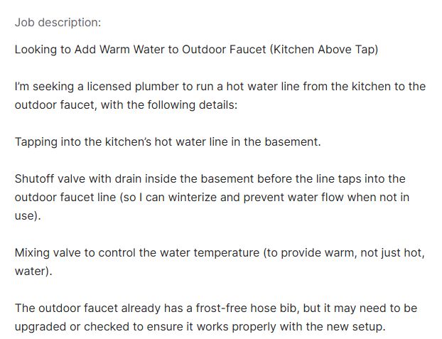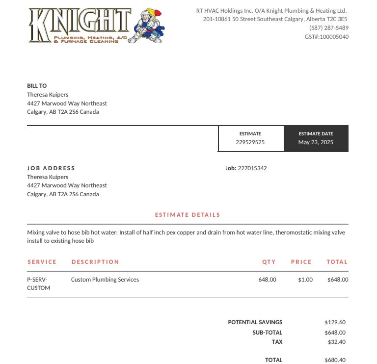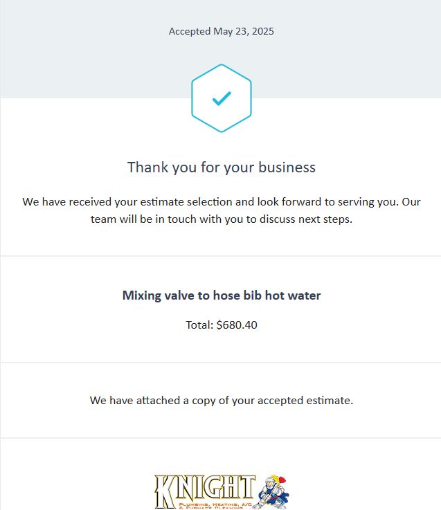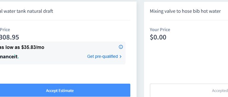I said to send a separate estimate for the heater; my priority was the faucet job