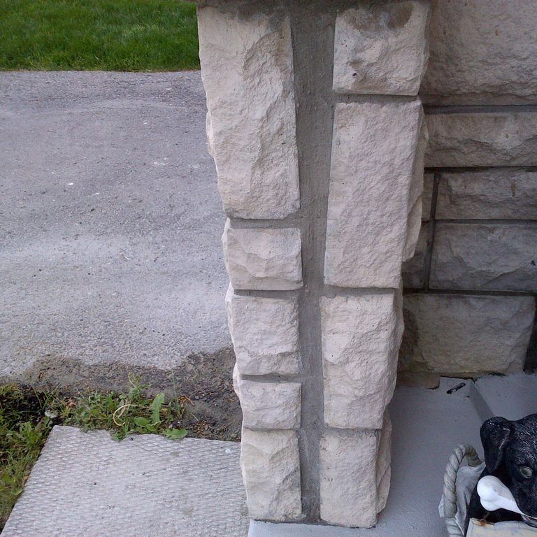 The next day he was joined by his colleagues. They worked diligently and carefully. The damaged bricks were replaced with some matching ones looking just like the existing bricks. The parging was done on all sides of the house.