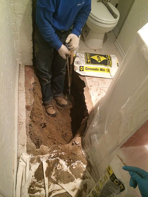 My doing laundry upstairs caused my tenants bathroom in the basement to flood... I called Public Plumbing after a search on the Internet... Mike arrived promptly the next day. Using some very sophisticated machinery and a camera, he was able to see that a section of clay piping had come apart, shifted and was almost completely plugged with tree roots... He was going to have to break through the tile, the concrete, dig out the clay pipe and replace it with a new proper pipe... a crew of 3 men arrived the next day... They started the work immediately, laying down tarps to protect carpets and flooring. Buckets of dirt and tiles were taken out efficiently and carefully. They put in 4" PVC, tying it into the newer renovations, back-filled the dirt and cemented the floor, preparing it for re-tiling... They were careful to make sure the cement was at the right level to accommodate the tile... All in all the work was done thoughtfully and well. I am very happy with the work. Mike cleaned out two drain lines to the street and found covers for the two clean out valves in my lawn. I would definitely recommend Public Plumbing and will call them for any future plumbing needs and renovations.