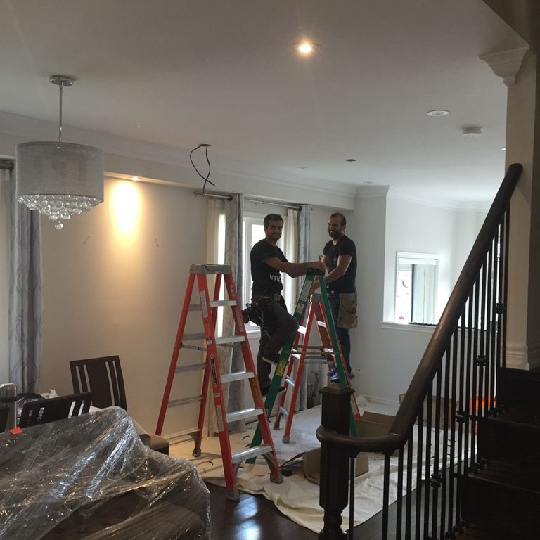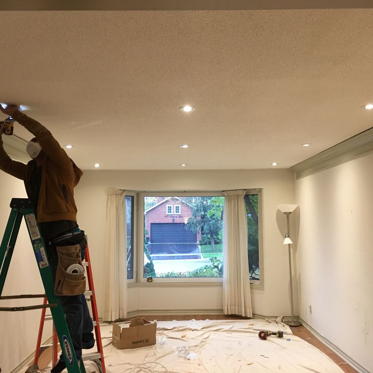 Great service, all previous positive reviews are justified. We had many lights installed on the second floor, main floor and outside eaves of house. They used airtight cans rated for insulation contact on the second floor as the lights were going into the attic. They used no-rust trim for the outside lights. All were installed without having to cut extra holes in the ceiling. Any visible small discovery holes were patched when finished. Everything was cleaned up and looked very professional when they were done. I wish I had hired them sooner they made it look easy.